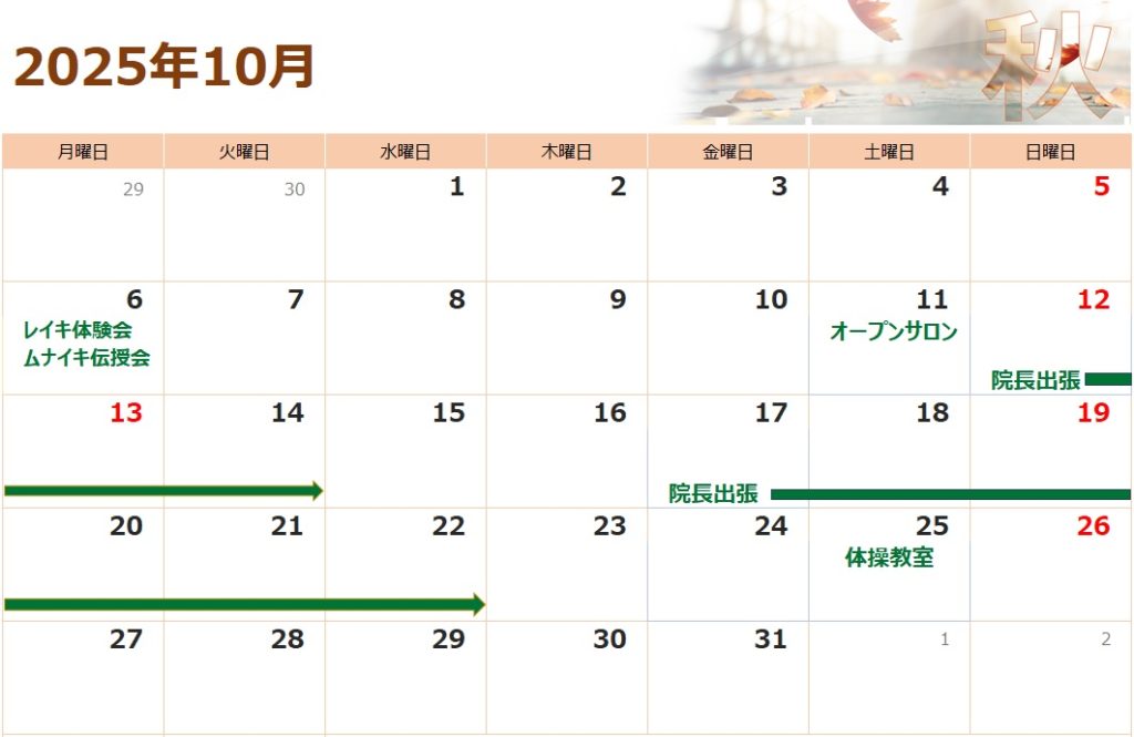 12日(日)~14日(火) 院長出張のため整体・鍼灸のボディケアをお休みします。